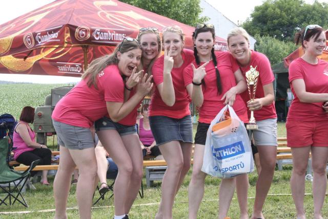 Podvečerní soutěž v PÚ se sice nekoná, celých mančaftů je tady poskrovnu, skoro to vypadá jen na setkání zástupců, ale o zábavu nouze není. Když se na provizorně postavenou dráhu vrhne první tříčlenný tým, aby společně proskákal pneumatikami, prolezl tunelem, oběhl bednu (Ufff, pěkně to při zatáčení na trávě klouže!), převrátil pneumatiku od traktoru, smotal hadice, a co nejrychleji vysrknul brčky jedno malé pivko, většina lidí je ještě zalezlá ve velkém občerstvovacím stanu. (Upřímně řečeno, ani se nedivím: vynikající jídlo, ať už si člověk z víkendového „menu“ vybere cokoli a skvělá a příjemná obsluha nemá chybu!)